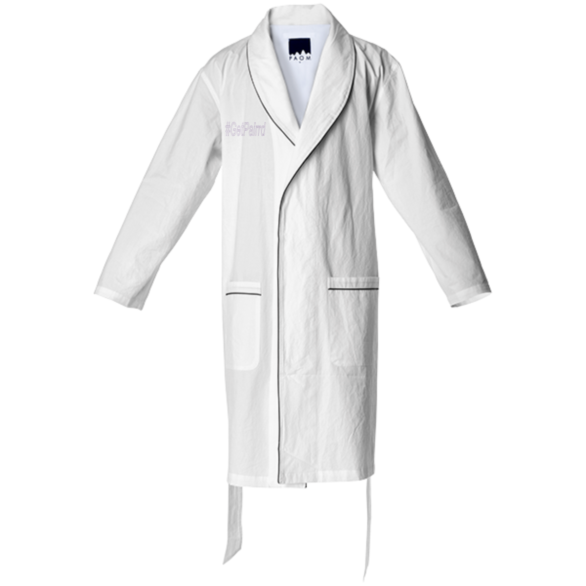 Comfortable fitting cotton robe with two front pockets and stylish black piping on the collar & pocket seams. Includes a black sash to tie at the waist or let hang through two side belt loops.