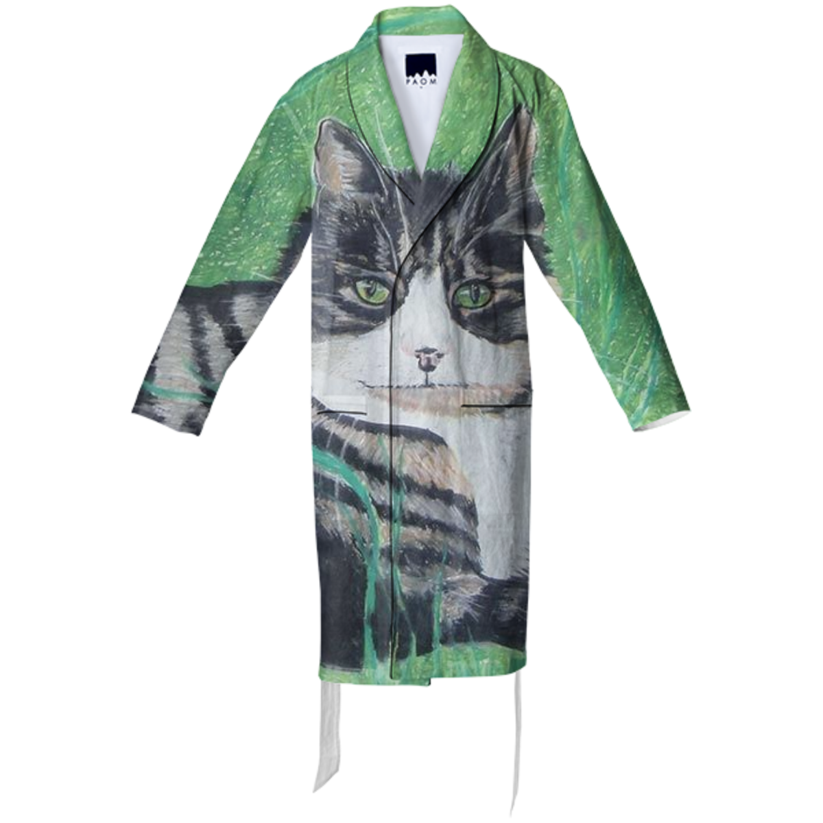 Comfortable fitting cotton robe with two front pockets and stylish black piping on the collar & pocket seams. Includes a black sash to tie at the waist or let hang through two side belt loops.