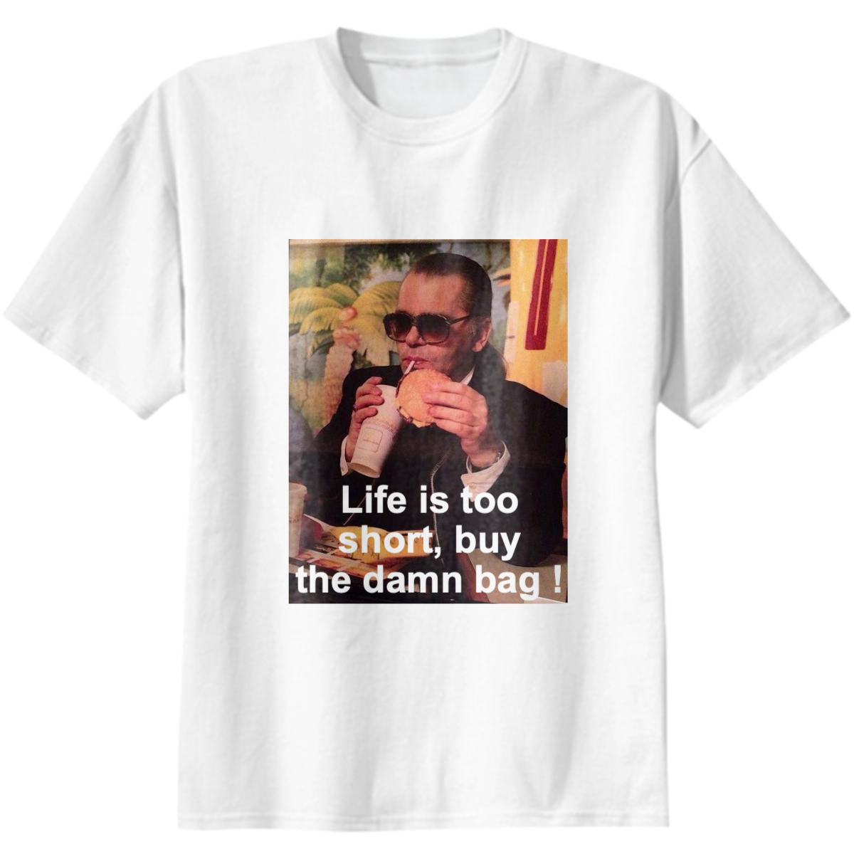 The product is printed on the front, with solid color white  on the back.
