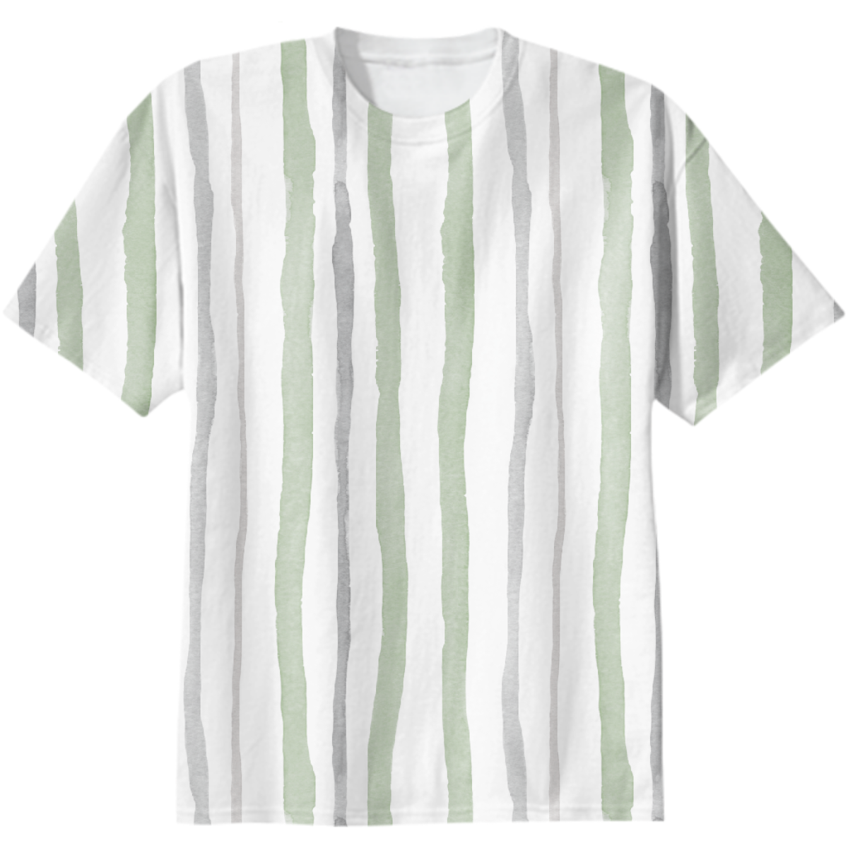 Pattern of watercolour stripes in leaf green and pale grey, to coordinate with the Chrysanthemum Crowd Dusky Pink collection.