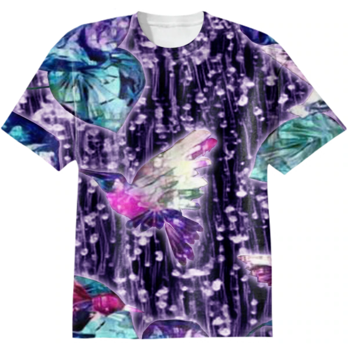 hummingbirds, flowers, leaves, bindweed, crystal, watercolor, very peri, trend year, sur