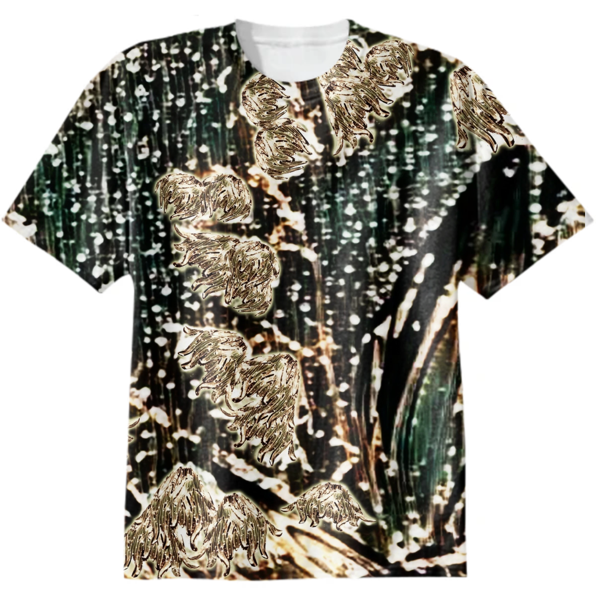 lily of the valley, rain, gold, greenery, leaves, flowers, abstract art,