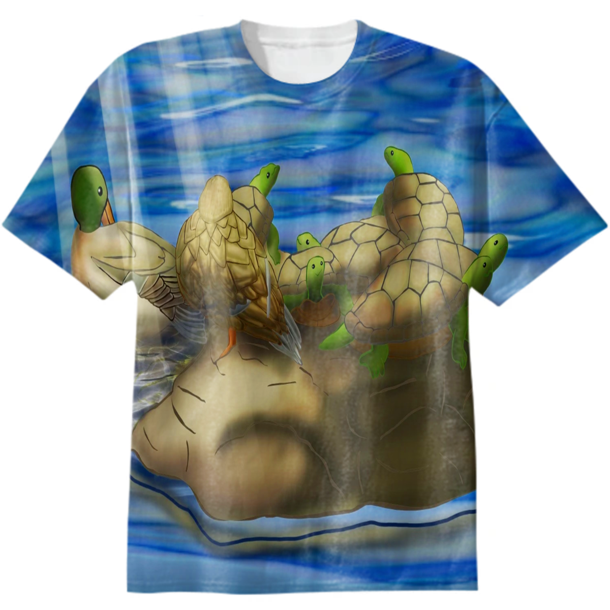 Turtles and Ducks on a Rock