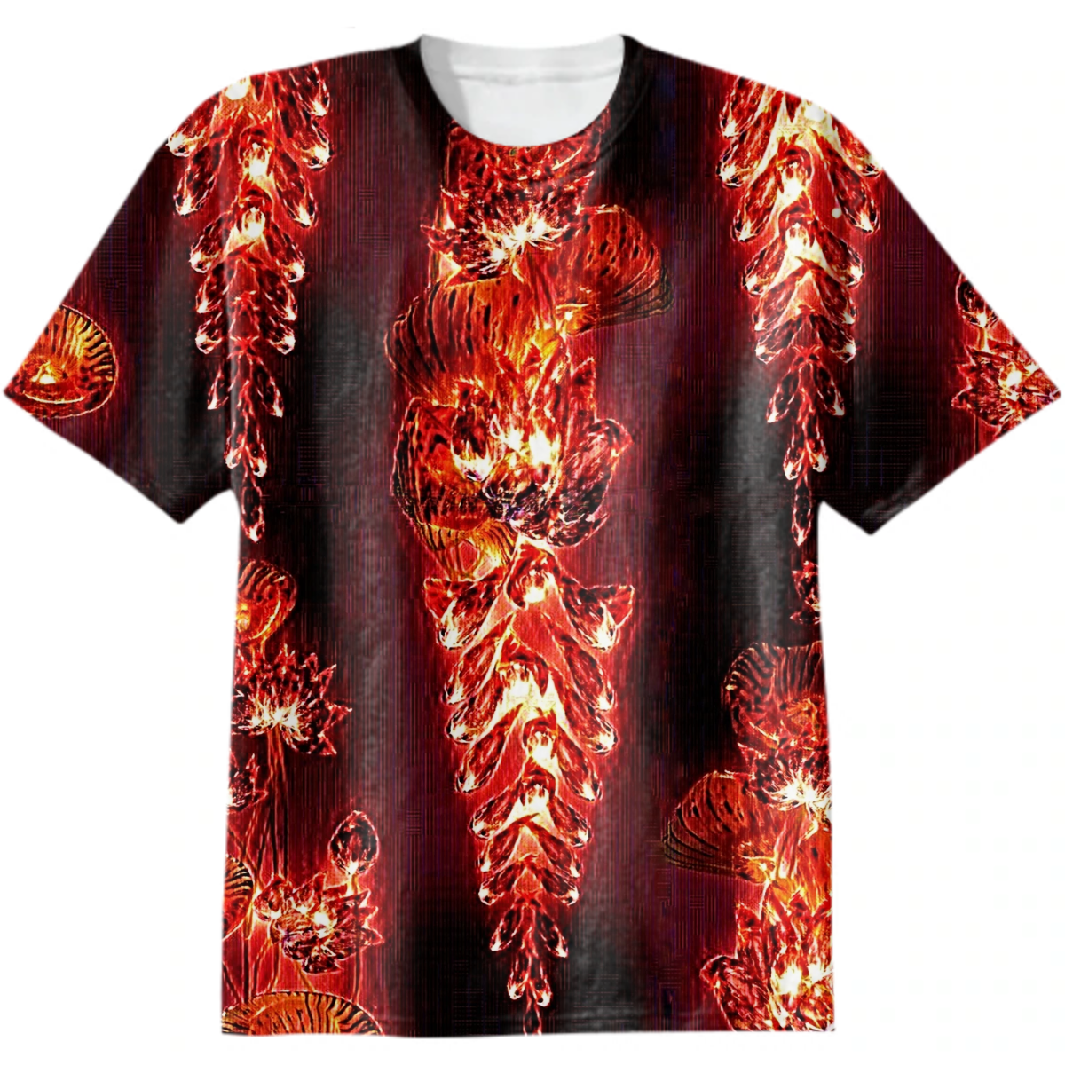 wisteria, lotus, leaves, fiery flowers, red, monochrome, surrealism