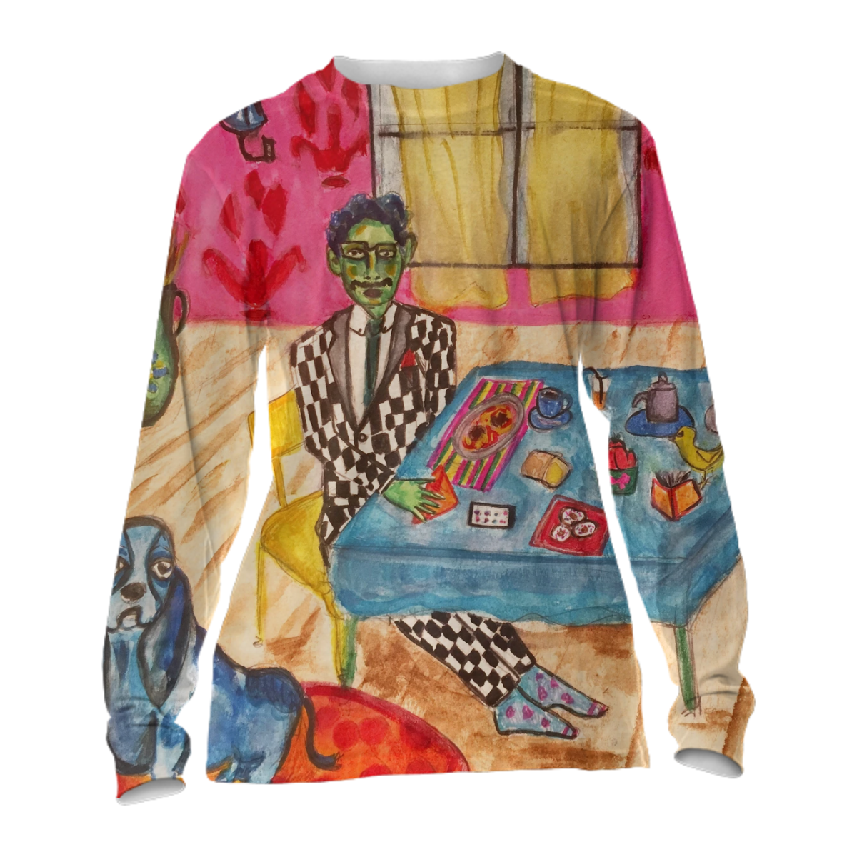 The uploaded file will be printed on the entire front and be mirrored on the back. Because of our cut and sew process some print elements on pockets seams and sleeves might not match up. For best results please upload a PNG or JPG with RGB color profile and dimensions of at least 35 inches width by 20 inches length. DPI can be as low as 72.
