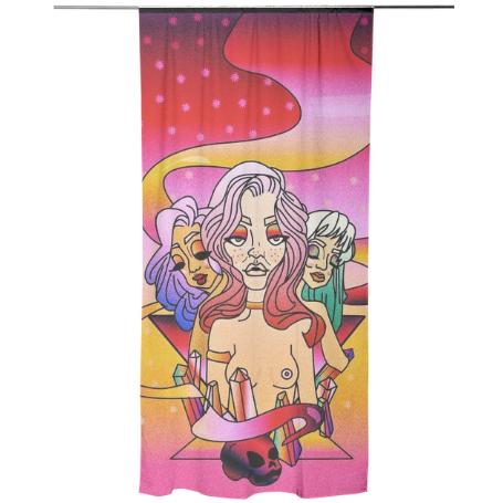 57 by 78 inch curtain with 4 inch top pole pocket. Pleasantly diffuses light but does not completely block it out.