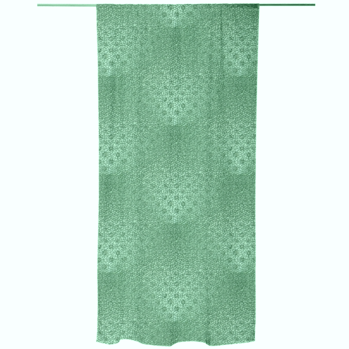 57 by 78 inch curtain with 4 inch top pole pocket. Pleasantly diffuses light but does not completely block it out.