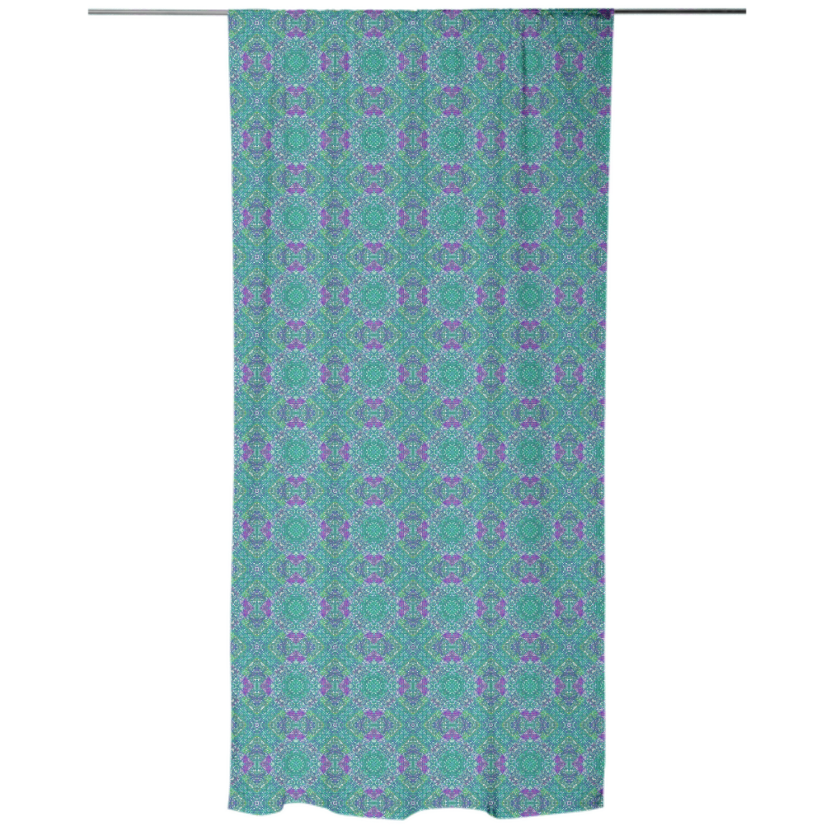 57 by 78 inch curtain with 4 inch top pole pocket. Pleasantly diffuses light but does not completely block it out.
