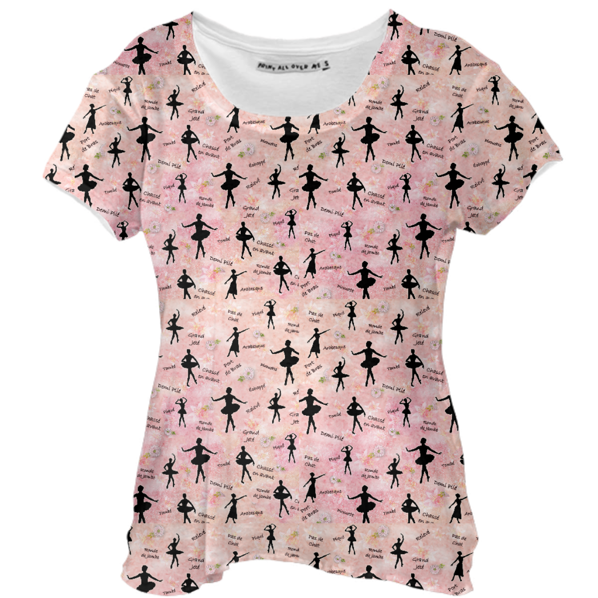 Loose fitting scoop neck shirt with nice drape and curved bottom hem.