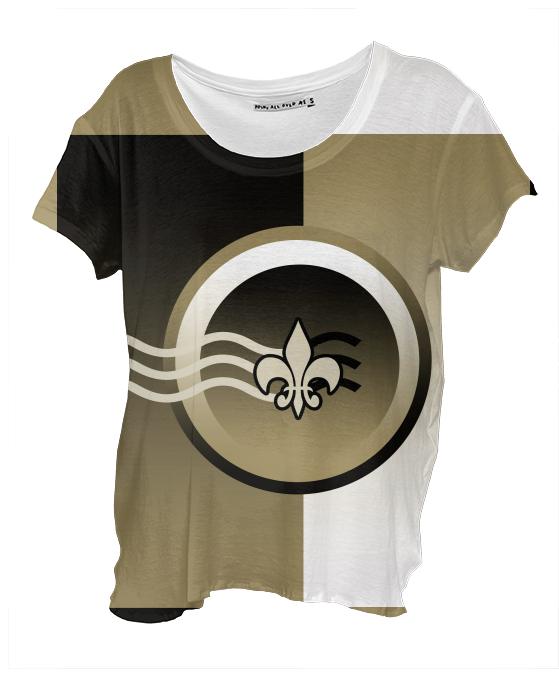 Loose fitting scoop neck shirt with nice drape and curved bottom hem.