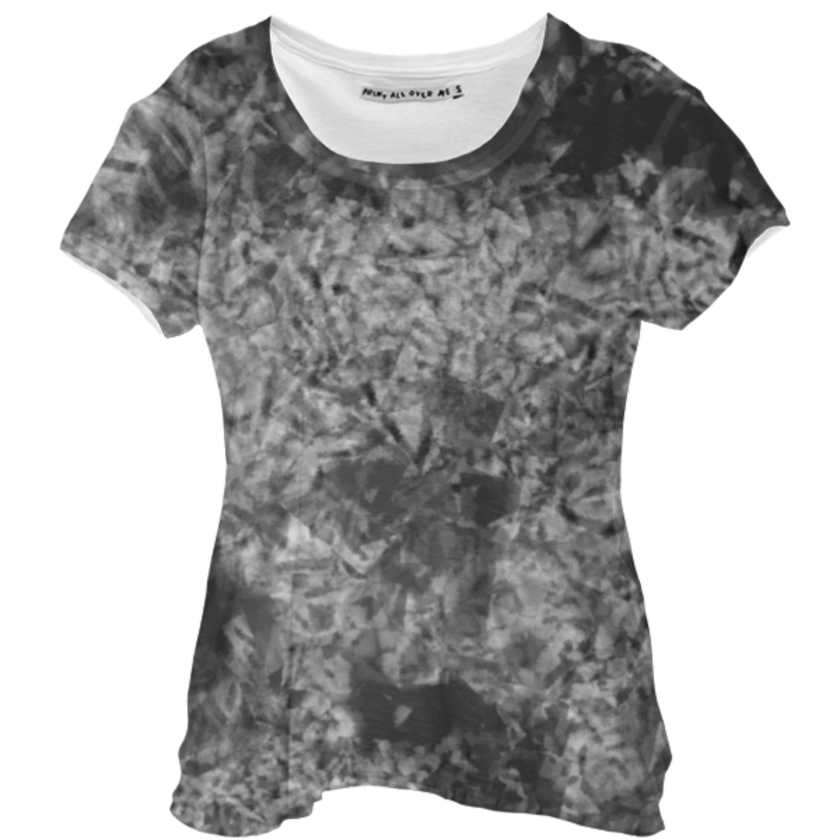 Loose fitting scoop neck shirt with nice drape and curved bottom hem.