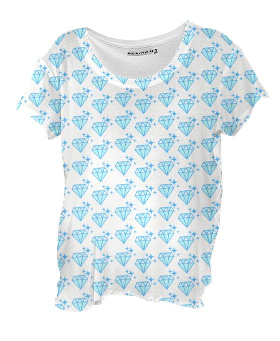 Loose fitting scoop neck shirt with nice drape and curved bottom hem.