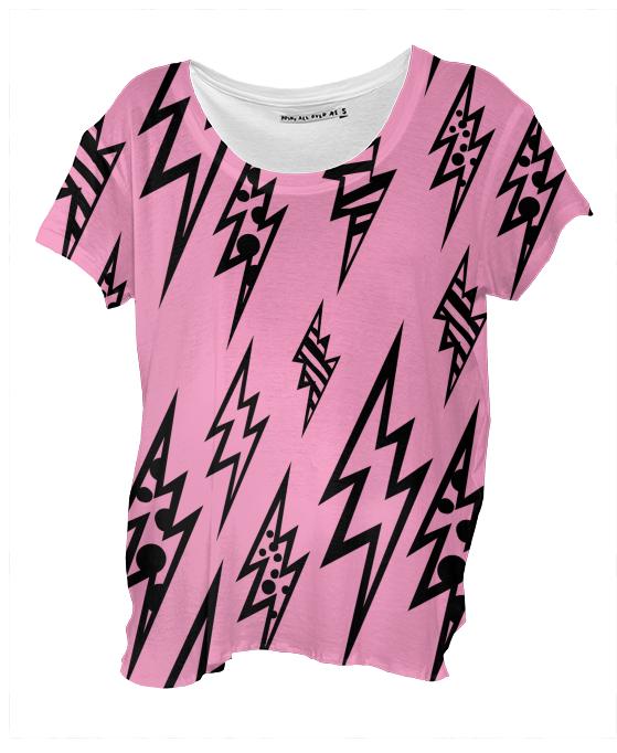 Loose fitting scoop neck shirt with nice drape and curved bottom hem.