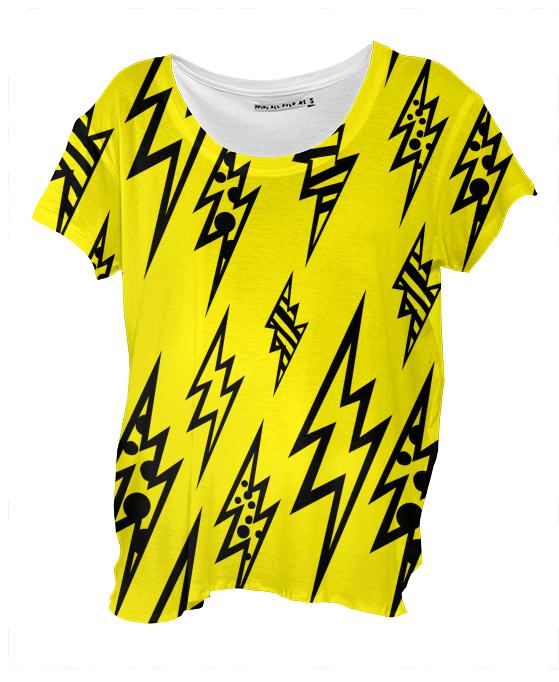 Loose fitting scoop neck shirt with nice drape and curved bottom hem.