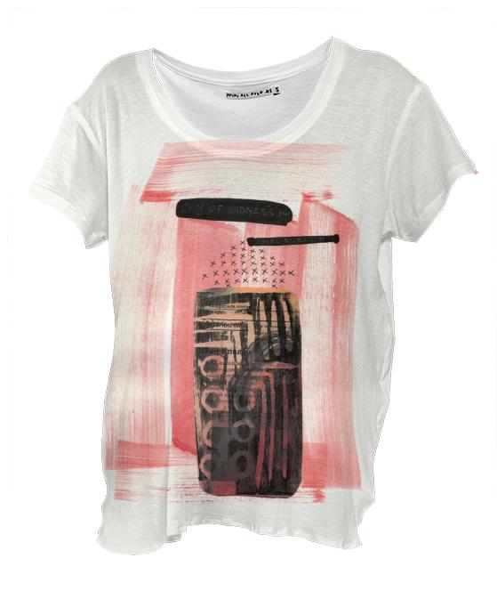 Loose fitting scoop neck shirt with nice drape and curved bottom hem.