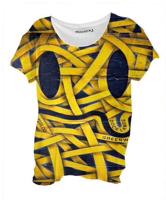 Loose fitting scoop neck shirt with nice drape and curved bottom hem.
