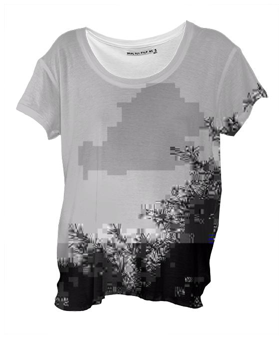 Loose fitting scoop neck shirt with nice drape and curved bottom hem.