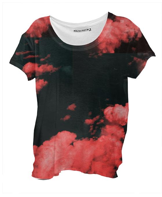 Loose fitting scoop neck shirt with nice drape and curved bottom hem.