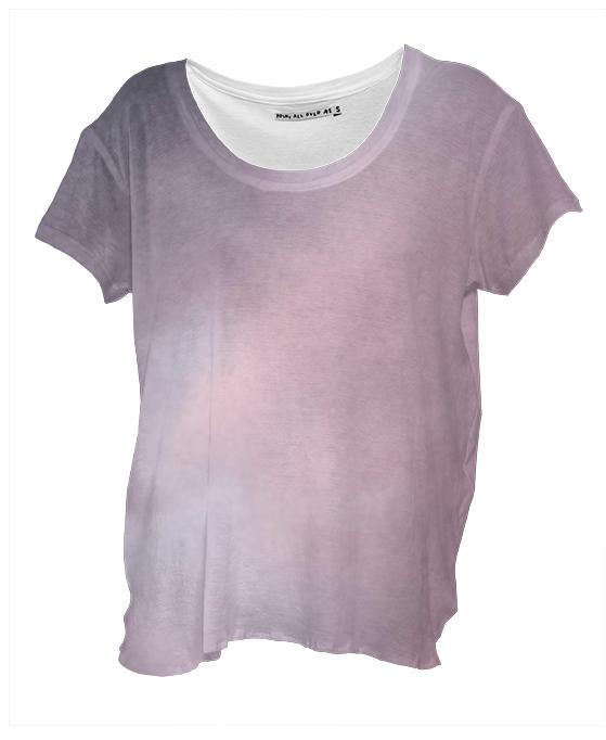 Loose fitting scoop neck shirt with nice drape and curved bottom hem.
