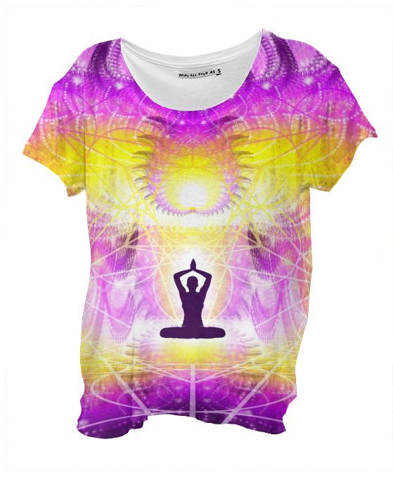 Loose fitting scoop neck shirt with nice drape and curved bottom hem.