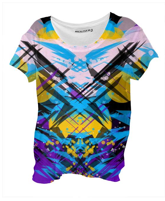 Loose fitting scoop neck shirt with nice drape and curved bottom hem.