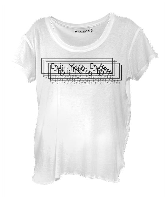 Loose fitting scoop neck shirt with nice drape and curved bottom hem.