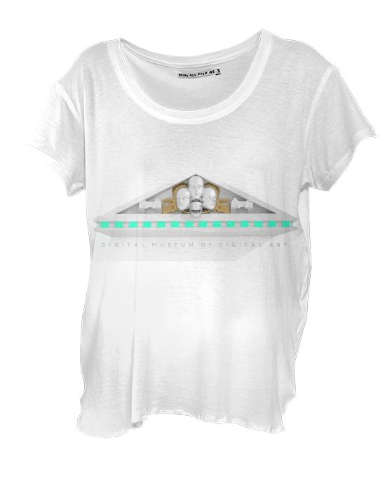 Loose fitting scoop neck shirt with nice drape and curved bottom hem.
