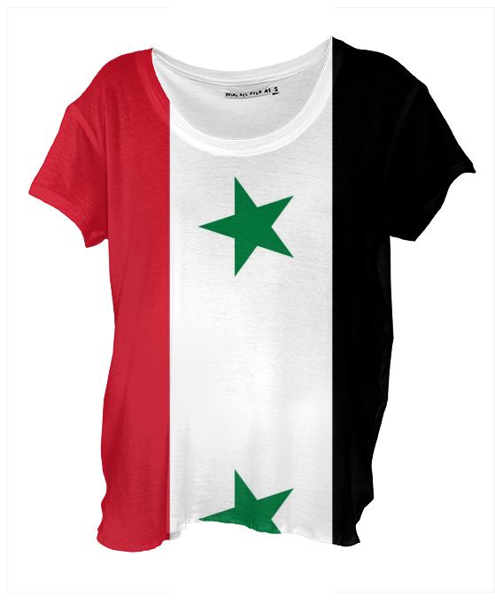 Loose fitting scoop neck shirt with nice drape and curved bottom hem.