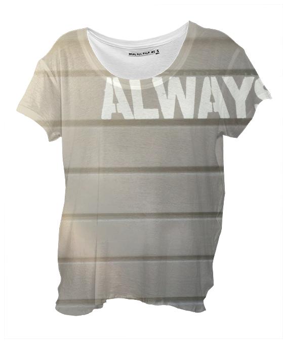 Loose fitting scoop neck shirt with nice drape and curved bottom hem.
