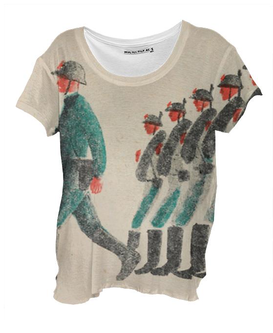 Loose fitting scoop neck shirt with nice drape and curved bottom hem.