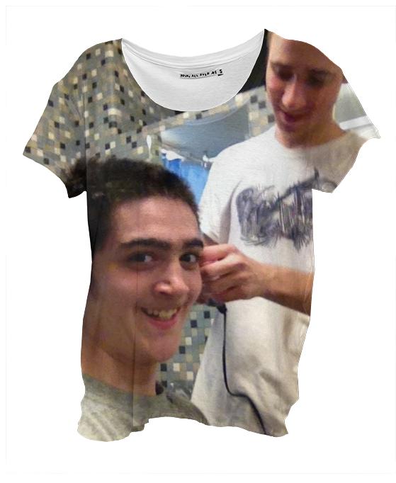 Loose fitting scoop neck shirt with nice drape and curved bottom hem.