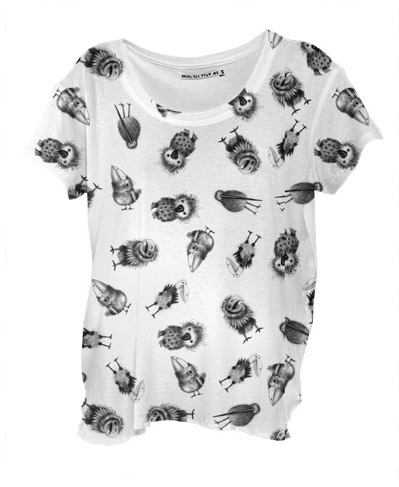 Loose fitting scoop neck shirt with nice drape and curved bottom hem.