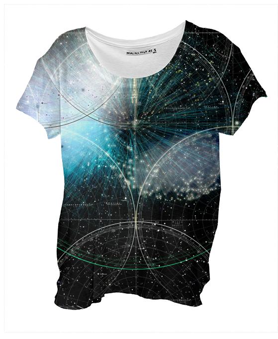 Loose fitting scoop neck shirt with nice drape and curved bottom hem.
