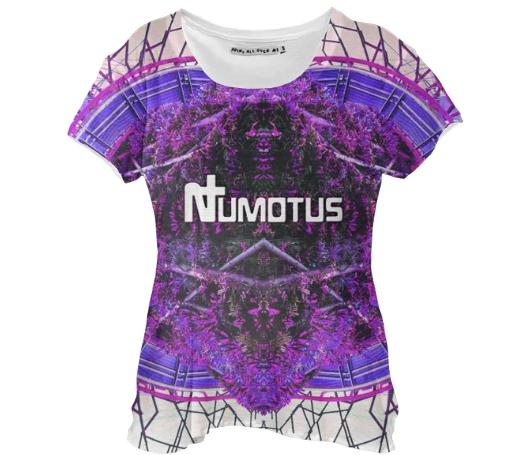 Loose fitting scoop neck shirt with nice drape and curved bottom hem.