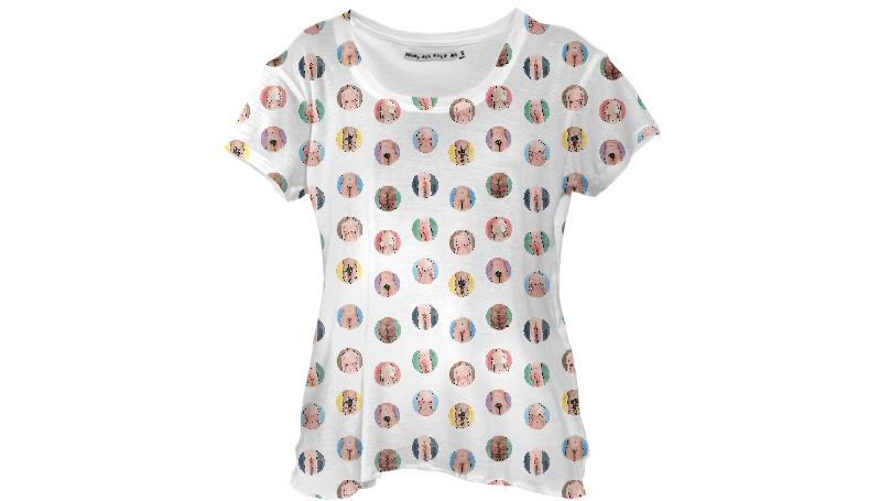 Loose fitting scoop neck shirt with nice drape and curved bottom hem.