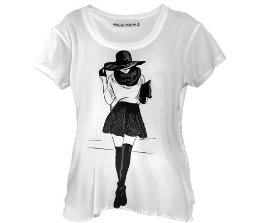 Loose fitting scoop neck shirt with nice drape and curved bottom hem.
