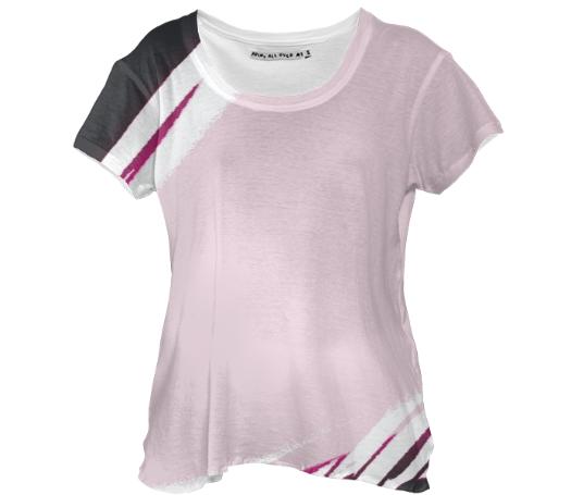 Loose fitting scoop neck shirt with nice drape and curved bottom hem.