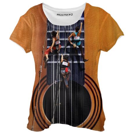 Loose fitting scoop neck shirt with nice drape and curved bottom hem.