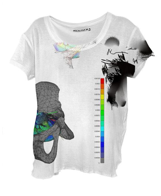 Loose fitting scoop neck shirt with nice drape and curved bottom hem.