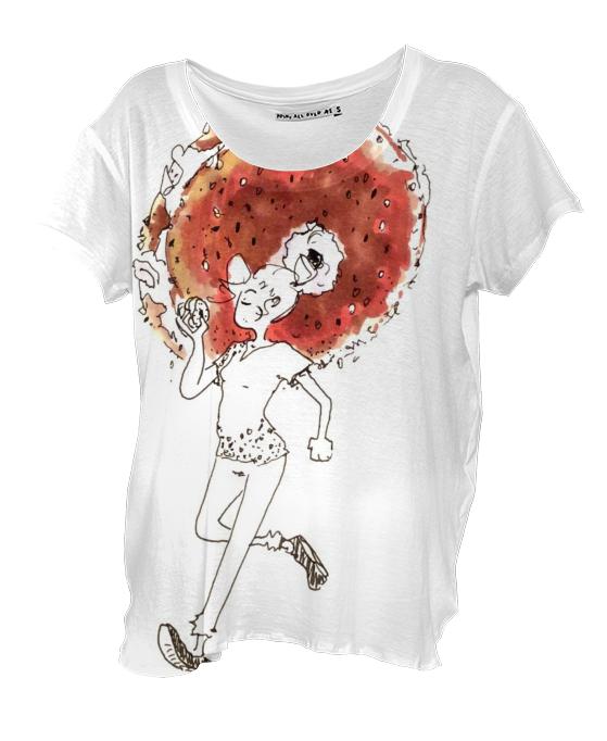 Loose fitting scoop neck shirt with nice drape and curved bottom hem.