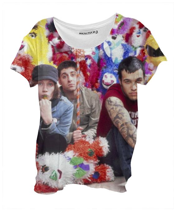 Loose fitting scoop neck shirt with nice drape and curved bottom hem.