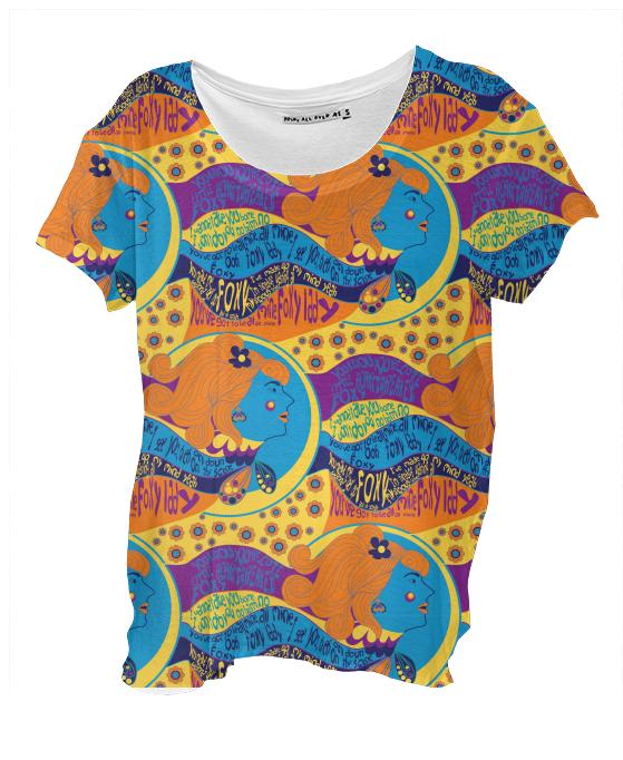 Loose fitting scoop neck shirt with nice drape and curved bottom hem.