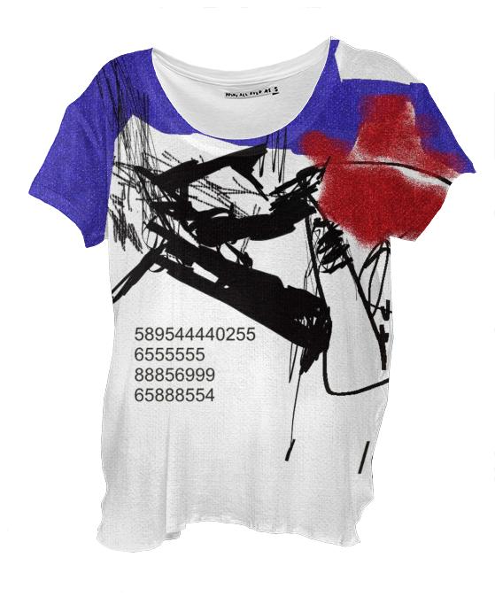 Loose fitting scoop neck shirt with nice drape and curved bottom hem.