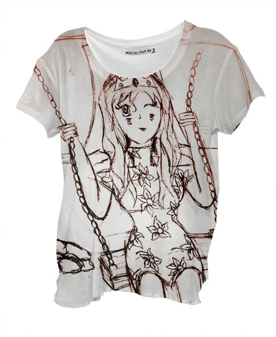 Loose fitting scoop neck shirt with nice drape and curved bottom hem.