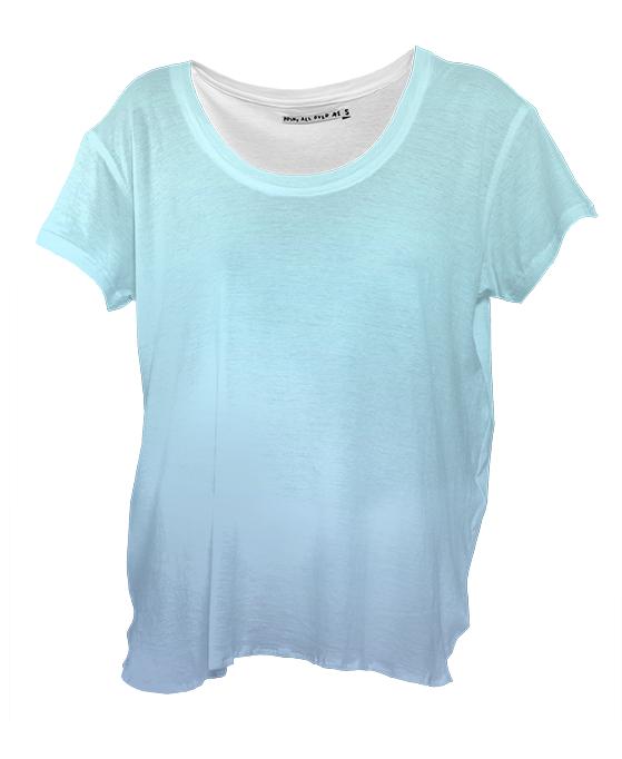 Loose fitting scoop neck shirt with nice drape and curved bottom hem.