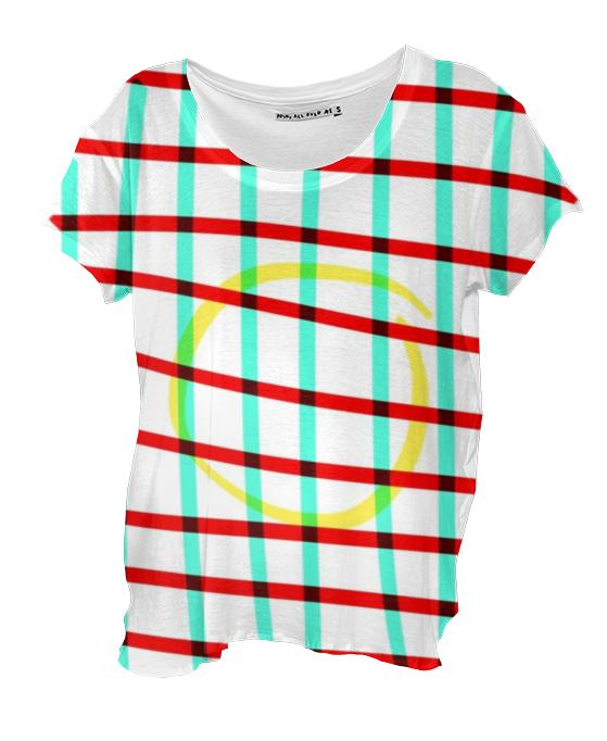 Loose fitting scoop neck shirt with nice drape and curved bottom hem.