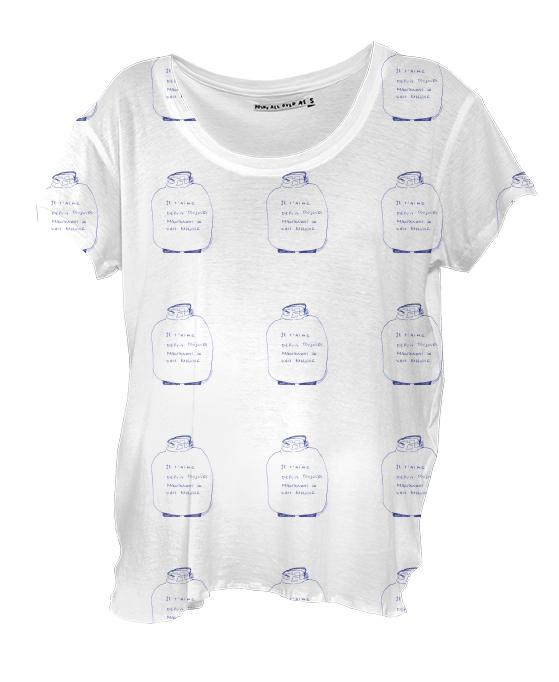 Loose fitting scoop neck shirt with nice drape and curved bottom hem.