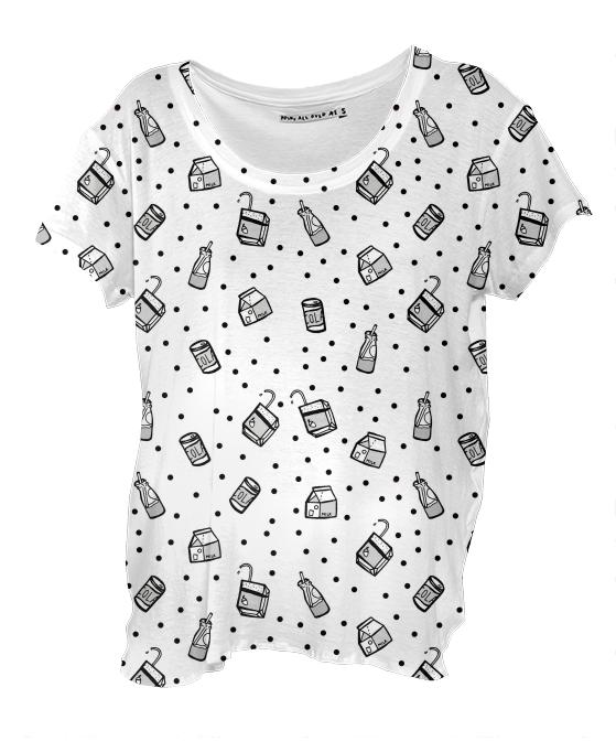 Loose fitting scoop neck shirt with nice drape and curved bottom hem.