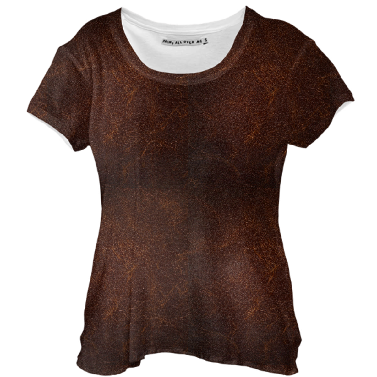 Loose fitting scoop neck shirt with nice drape and curved bottom hem.