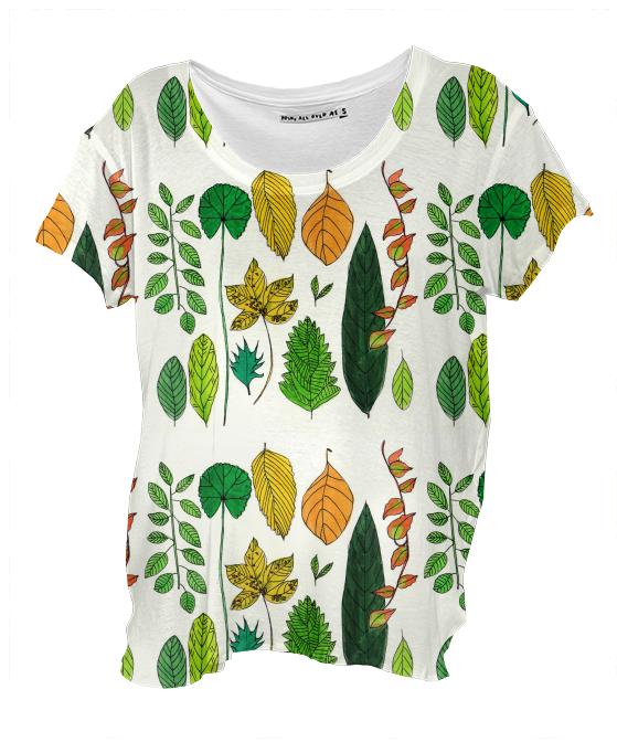 Loose fitting scoop neck shirt with nice drape and curved bottom hem.